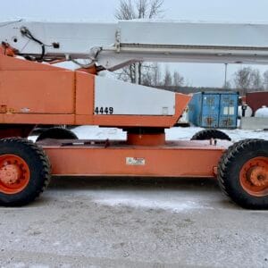 - Other: Max height 100ft, max reach 60ft, inspection expired June 2024, last service at 7,703 hours, basket 94″ wide x 28″ deep, platform capacity 500lbs, 4×4!