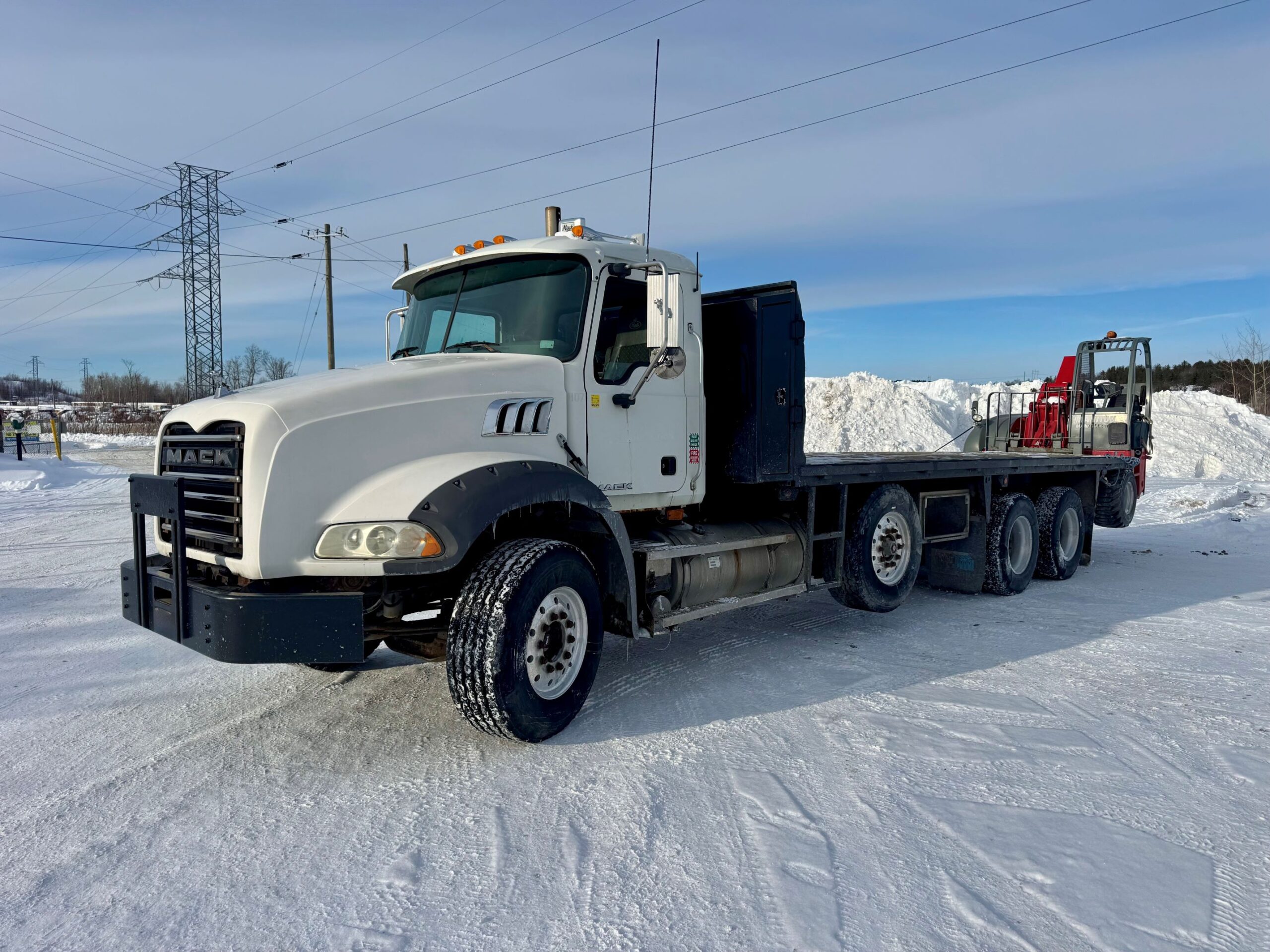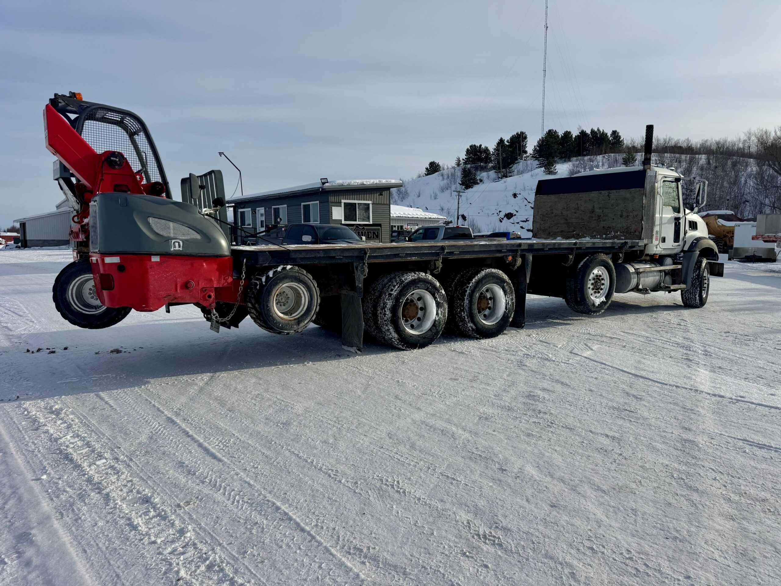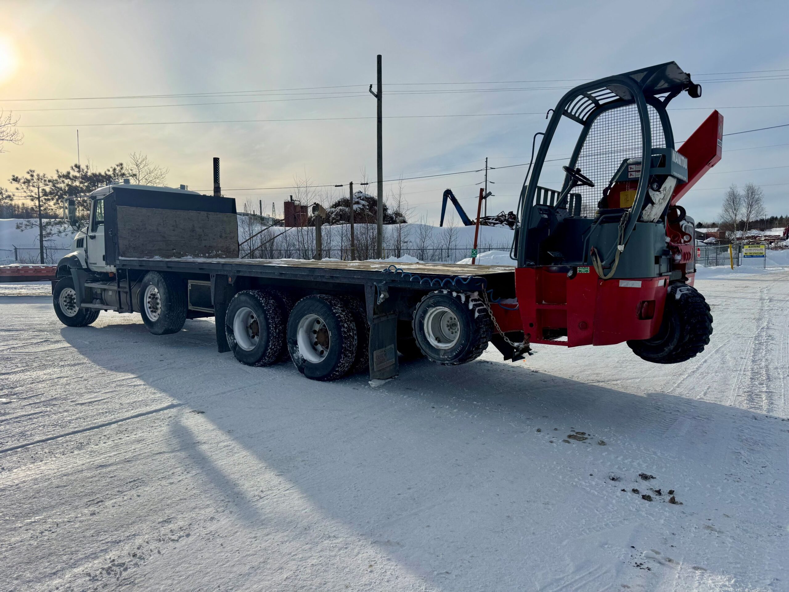 - Other: Last safety in June 2025, 24′ deck, steer axle, truck engine hours 6238H, GVWR 37,866kg, 2014 Manitou TMT 55HT T3 S2 Forklift : weight 6,102lbs, lift capacity 5500lbs, Kubota engine 49hp/diesel, hydrostatic trans, engine hours 620h!